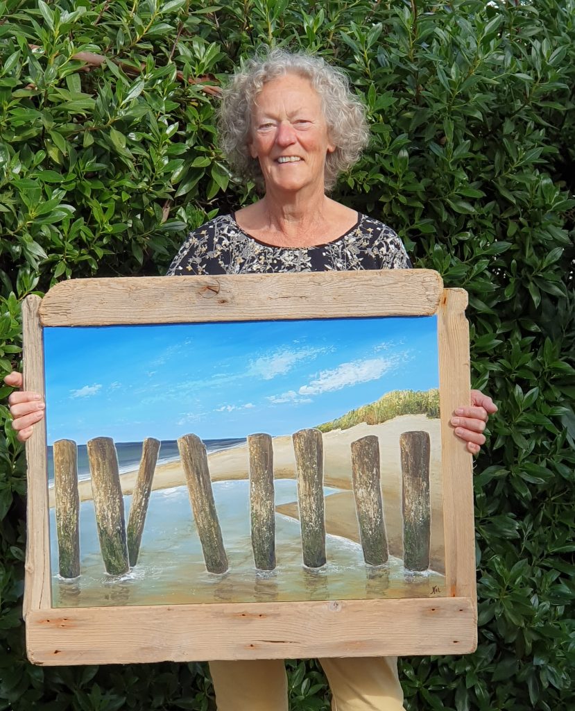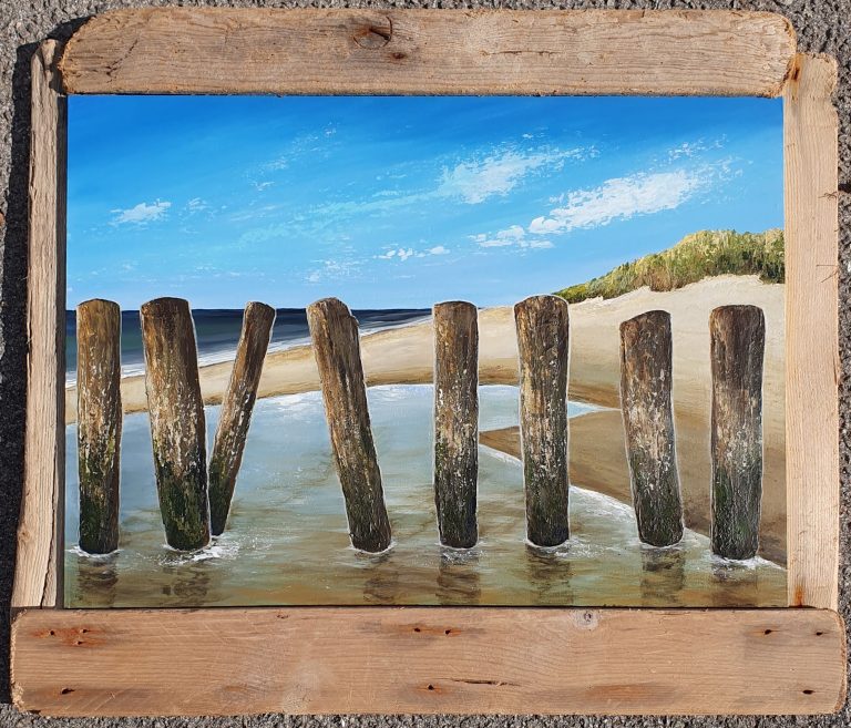 Tijdens mijn rondreis ook weer eens een “Hollands” plaatje geschilderd. De lijst is gemaakt van juthout wat ik langs de kusten van Portugal en Spanje heb gevonden. Het geheel is 70×80